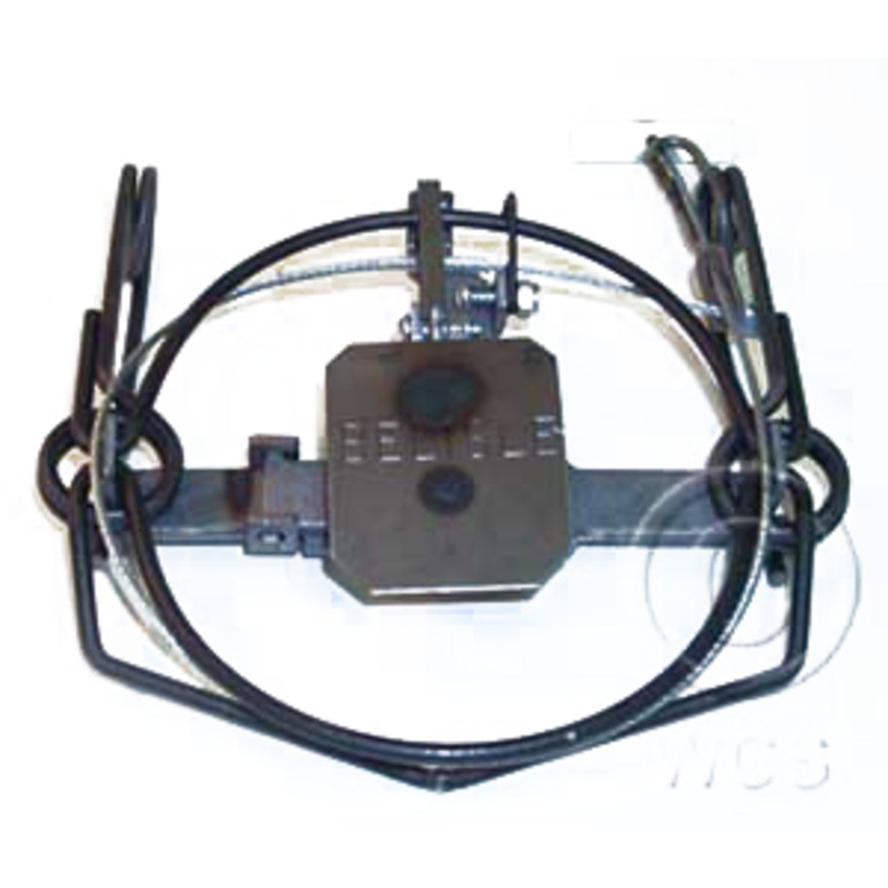 Belisle Foot Snare12″ modelfor bear, operates very much like a traditional foothold trap. It acts as a thrower for the cable loop which remains on the paw of the captured animal. When an animal steps on the pan and activates the device, the jaws close, lassoing the paw and then the thrower gets detached from the animal. The only thing remaining on the captured animal is the cable loop. Comes complete with one thrower and cable assembly.