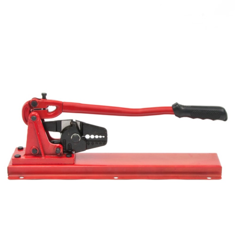 Bench Mount Swager has multi-compression jaws to swage 1/16", 3/32", 1/8", 5/32", and 3/16" aluminum double ferrules and aluminum stops. This swager bolts to a work bench and is excellent for mass production of snares, drowning slides, cable stakes, snare