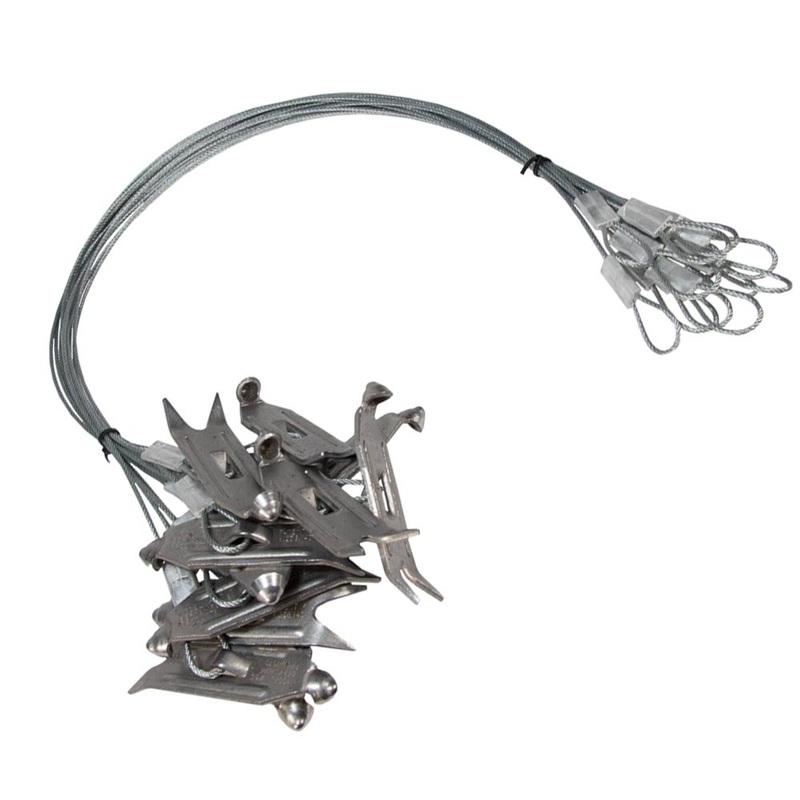 The Berkshire Heavy Duty Disposable Stakes, are lightweight and an inexpensive staking system. These stakes come with a 15" cable attached and can be used to anchor both traps and snares. The heavy duty stakes have a sharper point and thicker steel for eas