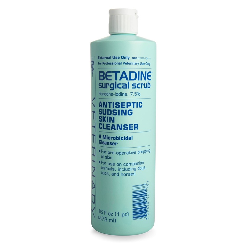This antiseptic sudsing skin cleanser is a germicidal cleanser used for preoperative and postoperative scrubbing and washing. Ideal for preparation of the skin prior to surgery and helping to reduce bacteria that can potentially cause skin infections. Betadine is for us on companion animals, including dogs, cats and horses and not for use on food producing animals.