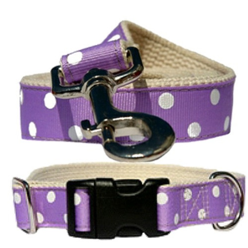 Betsy Lavender Polka Dog Collars & LeashesAttention, fashionable pups! Get ready to rock the casual chic look with our ever-popular Betsy Polka Dot collar! This classic design features polka dots that never go out of style, crafted with a durable cotton we