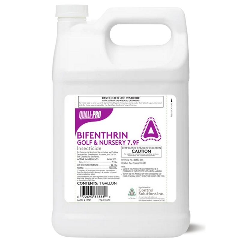 Bifenthrin Golf & Nursery 7.9F is a pyrethroid insecticide that works to give you long lasting prevention and control of pest infestations on ornamentals, golf couses and other listed sites.More Information Package Size: 1 gal jug (for a case order 4) Acti