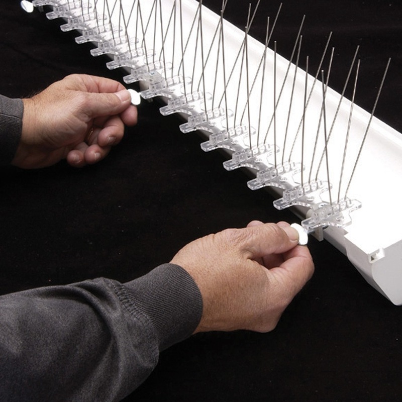 Gutter spikes are ideal for keeping birds from nesting and clogging gutters or drains; when attached to the lip of a gutter, birds will not be able to land on the un-even surface, or get access to the gutter, and move on to a better spot.Gutter Spikescome