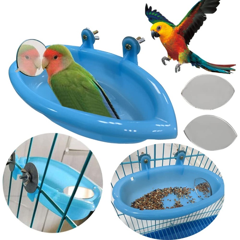 Bird Bath for Cage Birdbath Tub Bowl Basin with Double-Sided Mirror Hanging Birdbath Toy Small Animal Pet Water Shower Food Feeder for Small Birds Parrot Budgie Parakeet Cockatiel Cage Accessory
