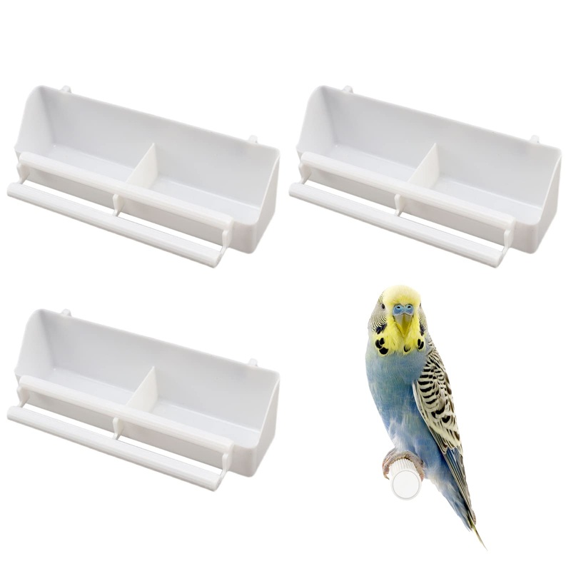 ?Bird Feeder Set?3 pcs bird feeder, Bird Feeder Cup Size approx. 21 x 5x 6.5cm (8.3 x 2 x 2.6 inch). ?Compartments Design?Bird food bowl has two compartments.You can put food in one compartment and water in the other compartment. ?Material?Made of high-quality white PP material, friendly to birds,anti-rust,odorless and durable. ?Easy to install?Bird food bowl for cage is easy to assemble and clean, no need to open the cage to fill it with water or small food. ?Widely Used? Bird feeder dish is suitable for budgies, peony, parrot, parakeet, cockatiel, finch and other small bird.?Widely Used? Bird feeder dish is suitable for budgies, peony, parrot, parakeet, cockatiel, finch and other small bird. ?Easy to install?Bird food bowl for cage is easy to assemble and clean, no need to open the cage to fill it with water or small food. ?Material?Made of high-quality white PP material, friendly to birds,anti-rust,odorless and durable. ?Compartments Design?Bird food bowl has two compartments.You can put food in one compartment and water in the other compartment. ?Bird Feeder Set?3 pcs bird feeder, Bird Feeder Cup Size approx. 21 x 5x 6.5cm (8.3 x 2 x 2.6 inch).