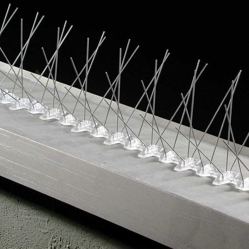 Bird-Flite has a polycarbonate base and stainless steel spikes. It is available in three widths, to accommodate varying surfaces. Each section is 1 ft. long. Don't use where birds are nesting. Each kit below includes Bird Barrier Bond.Where to Use:Ledges,