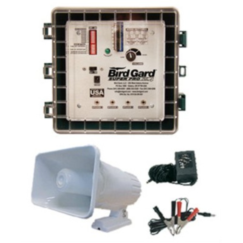 The BirdGard Super Pro PA4is specially designed to broadcast unique low frequency sounds produced by certain birds and animals. This PA4 has one PA PRO speaker and can accomadate up to 4 speakers. The one PA speaker covers up to a 250 ft x 175 ft area. Additional speakers can be added to increase coverage area. The system includesa user-replaceable sound card that can now be easily changed in the field in order to use different recorded sounds.
