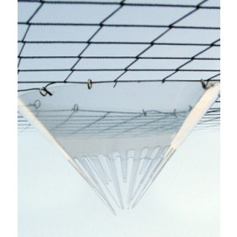 TheBird Scapeis a netting accessory that lets trapped birds leave netted off areas. The Bird Scape has a funnel that birds can fly out of, but not back into.Bird Scape installs directly into bird netting with hog rings.Allows trapped birds to leave netted