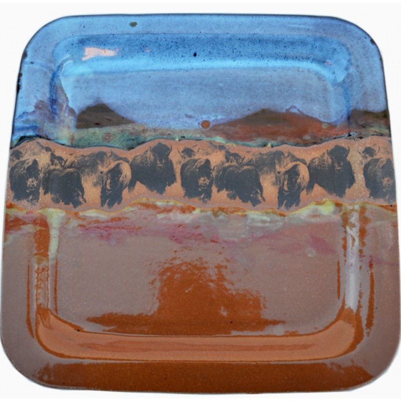 15 Inch Bison Stampede Square Platter. Microwave, Oven, Dishwasher and Food Safe!Hand made inColorado.May have slight variation due to the nature of the glaze.