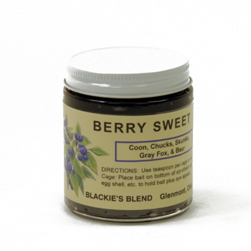 Berry Sweet has an amazing freshness to its aroma. Blackberry is used as a "blanket" to cover a red raspberry base. The mix is fortified with a stiff charge of "sugar aroma" to enhance the berry smell . Great for raccoon, groundhog, skunk, gray fox and bea