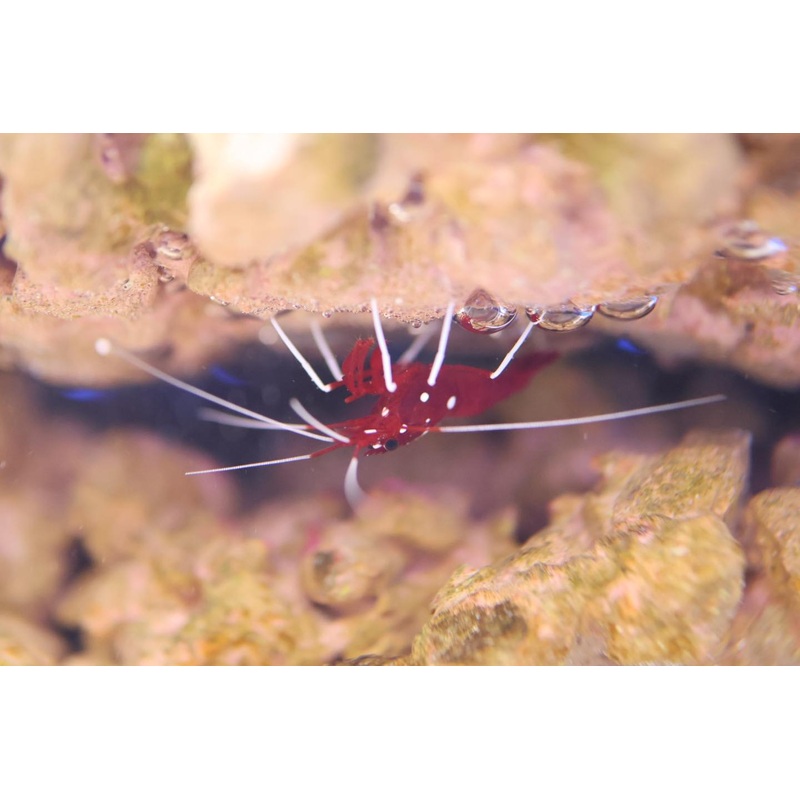 LIVE STOCK - Marine Inverterbrate - Blood Red Cleaner Shrimp (Lysmata debelius)Marine inverterbrates that live symbiotically with fish. They will hide in their caves with their antenae hanging out waiting for fish to swim past for them to pick off dead sca