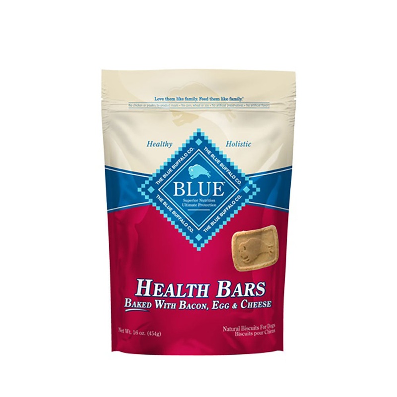 Tasty and wholesome BLUE Health Bars with Bacon, Egg and Cheese have a crunchy texture your dog will love. Wholesome whole grains and nutritious vegetables work together to help keep him healthy.