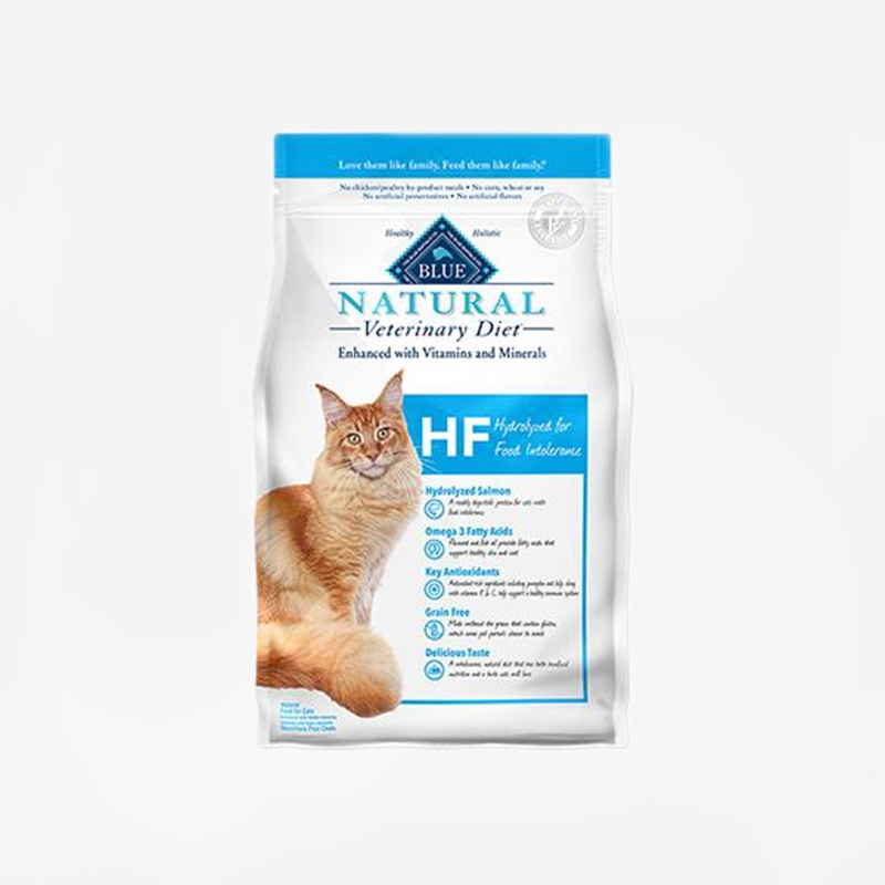 Product DetailsBLUE Natural Veterinary Diet HF Hydrolyzed Salmon for Food Intolerance for Cats - DryProduct InformationFormulated for cats experiencing food sensitivities, BLUE HF Hydrolyzed for Food Intolerance helps minimize the chance of adverse reactio