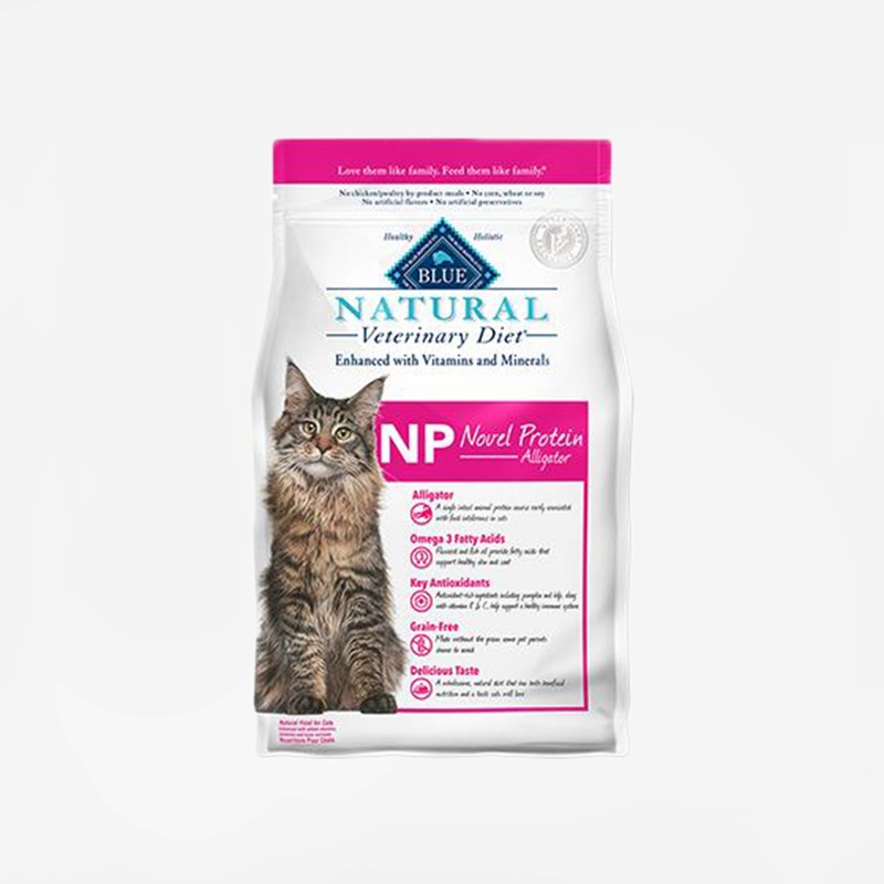 Product DetailsBLUE Natural Veterinary Diet NP Novel Protein Alligator for Cats - DryProduct InformationBLUE NP Novel Protein - Alligator is formulated to nutritionally manage inflammatory skin and GI diseases in cats who experience adverse food reactions.
