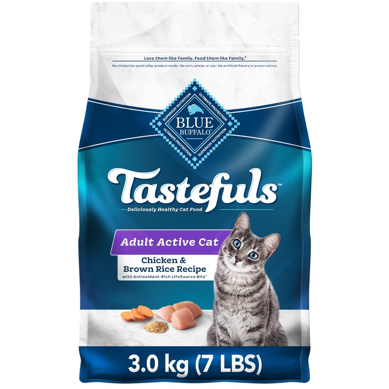 BLUE Tastefuls dry cat food recipes are made with the finest natural ingredients enhanced with vitamins and minerals. Starting with real meat as the 1st ingredient, they include wholesome grains, veggies and fruit, plus our exclusive, antioxidant-rich Life