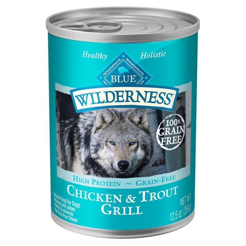 Packed with more of the meat dogs love and free of the grains that contain gluten, BLUE Wilderness wet dog food is made to feed your dogs wild side. With real trout and chicken, plus fruits and vegetables, this grain free recipe features the finest natural ingredients enhanced with vitamins and minerals.