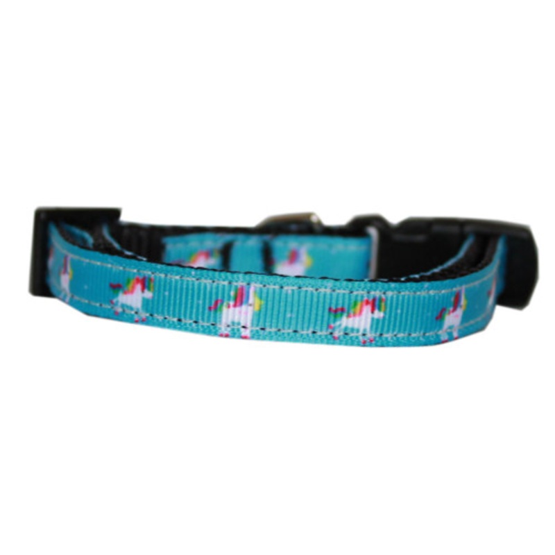 Blue Unicorn Nylon Dog & Cat CollarFun and adorable nylon dog collar! A must have for any festive pet collar collection.Matching Lead available: Leash is available in 4 ft or 6 ft You should be able to place 2 fingers between the collar and your cat or dog