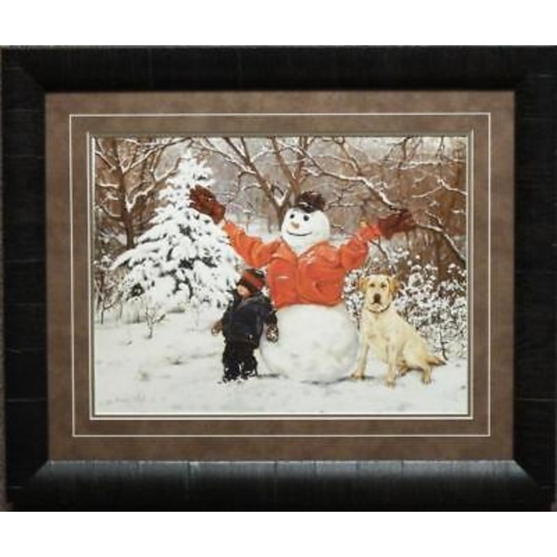 Bonnie Mohr Snow Buddies Snowman Children Dog Art Print-Framed 23 x 19