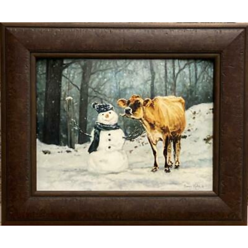 Bonnie Mohr Well Hello There Farm Snowman Cow Art Print-Framed 21.5 x 17.5