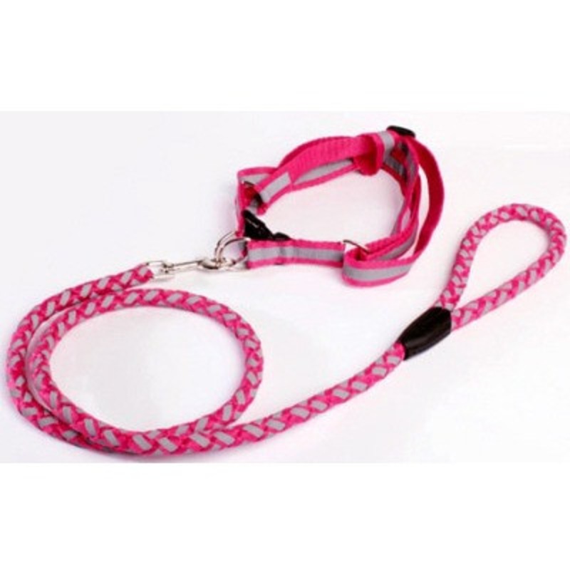 This designer heavy duty braided reflective dog leash and step in harness are perfect for night time walking. Very Unique in design. The adjustable step-in harness adjusts for small to medium size dogs. The Leads have a bit of a stretch, or give, by design. The Fuchsia is a beautiful Neon Fuchsia.