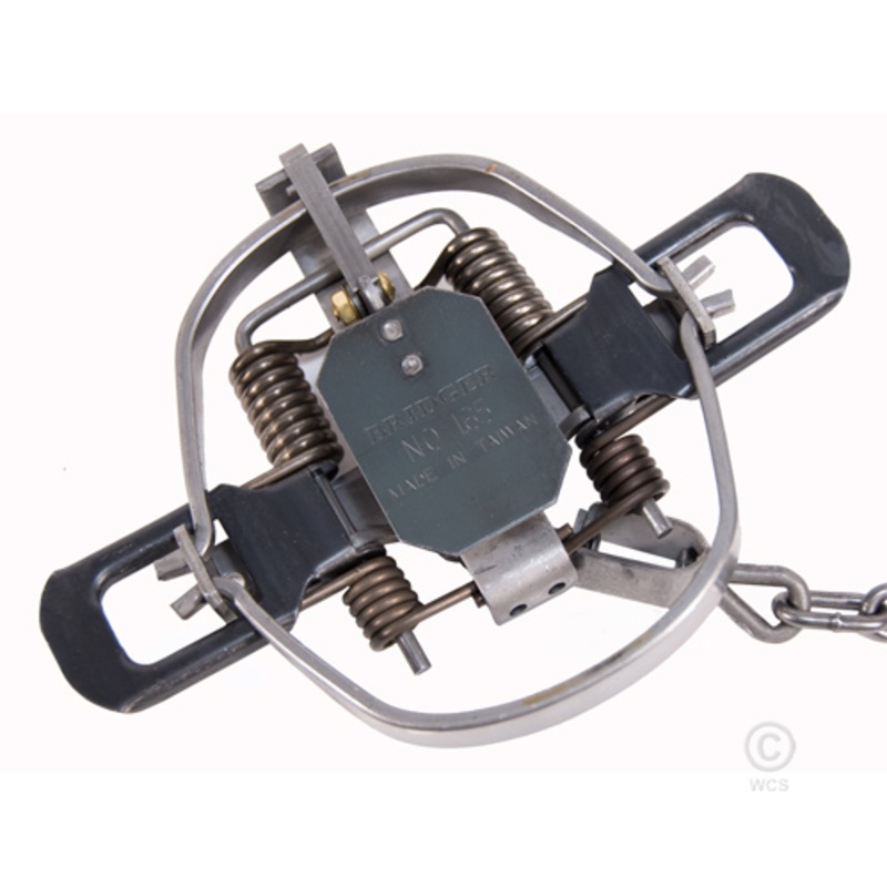 Bridger #1.65 Regular Jaw (4 Coil) has a jawspread of5 7/16″ Outside jaw spread. Available with plain (closed) jaws or with offset (3/16″ gapped) jaws. A stout trap for fox, raccoon, coyote.