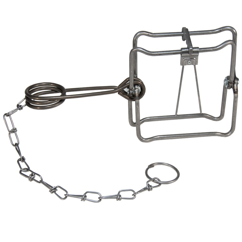 Bridger #110 Magnum Bodygrip Traphas an open jawspread measuring 4 1/2 ” x 4 1/2 ” a single spring, and is good for muskrat, mink, squirrel, etc. This lethal trap captures the animal around the neck and body when the animal passes through it. Typically, this trap is meantto be submerged in water or in or on a structure, eliminating the possibility of non-target captures.
