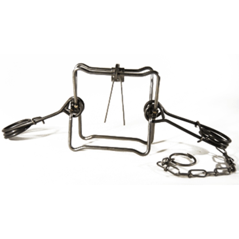 Bridger 4D x 4D (#120) "Magnum" Bodygripperwhichhas an opening jawspread measuring 4" x 4", and has double springs with safety hooks. This trap is good for muskrat, mink, squirrel, etc. Thislethaltrap captures the animal around the neck and body when the a