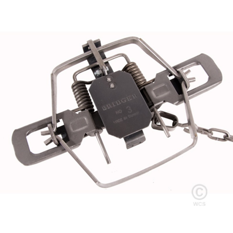 The Bridger #3 Offset Jaw, 2 coil, traps have a 6 " outside jaw spread and 6 1/8" inside jaw spread. Center swiveled & baseplated. A heavy duty trap for coyote, bobcat, otter & beaver.SINGLE TRAPBrand:BridgerWeight:2.37 lbs. each (1.08 Kg)Target Pests:Coyo