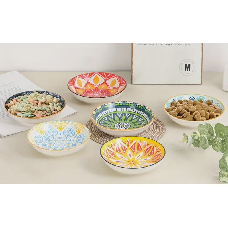 Bright Ceramic Cat Bowl Asst Patterns 5.5in