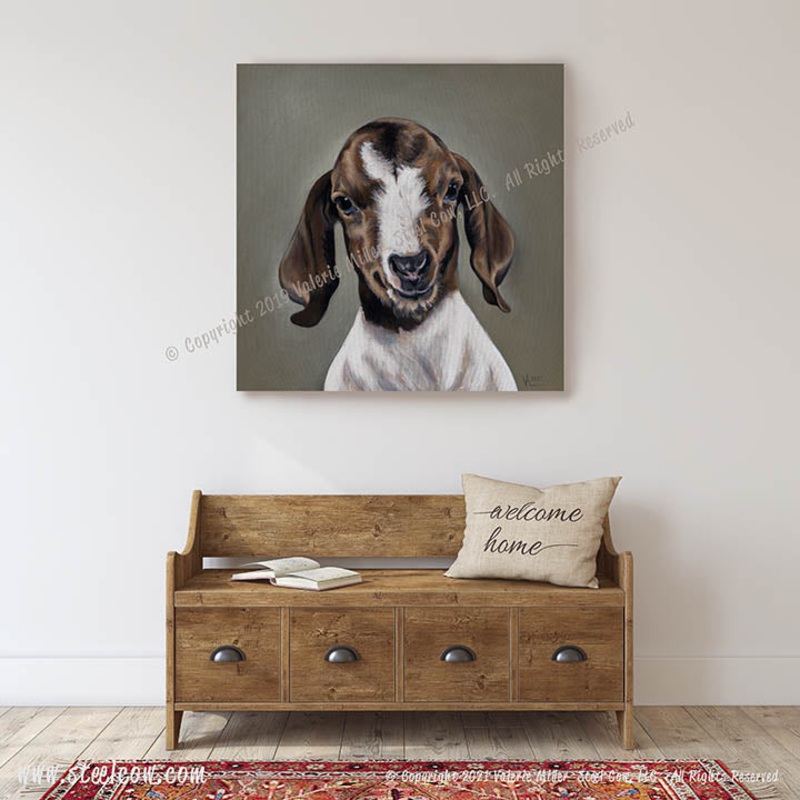 Available in 5 sizes of ready to hang canvas prints and 2 sizes of paper prints (black frame not included), Magnets and Holiday Ornaments