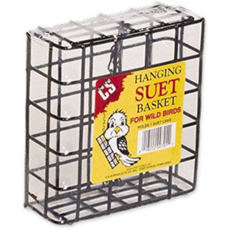 Featuring a plastic coated black wire basket with chain hanger, fully assembled. Holds 1Suet Cake. 1 black wire. 1.75 x 4.875 x 5.125 high. Our Wild Bird Suet Baskets are a necessary key to your successful bird feeding and can be left out all year long.