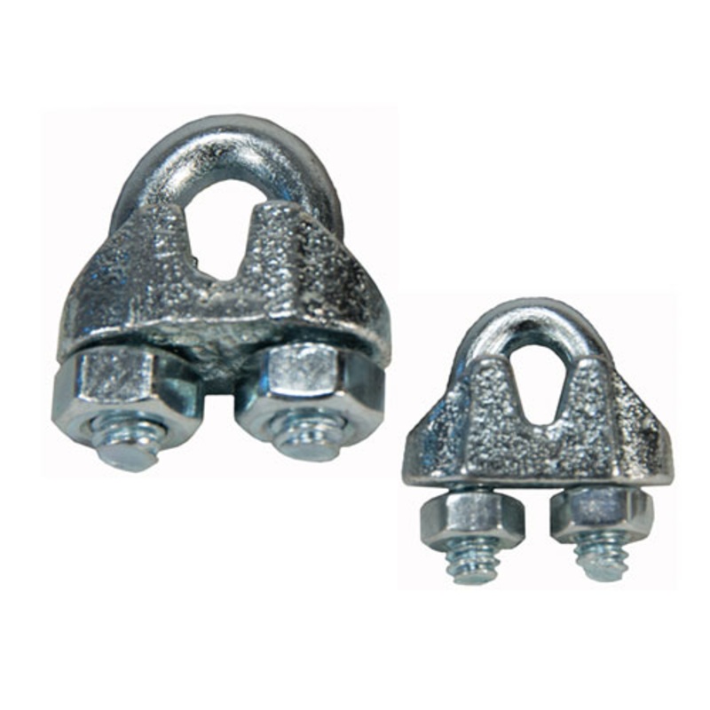 Wire rope cable clamps are available in 3/16" and 1/8" sizes. The 1/8" size also fits 3/32" cable.For maximum strength; use a minimum of 3 clamps to hold properly.