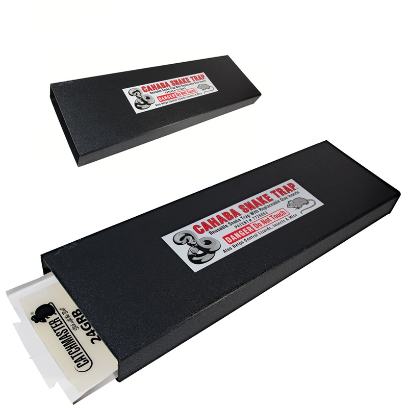 Cahaba Snake Trap (Large) which measures 32″L x 10″W x 2.5″H. This trap is made of an outdoor commercial grade plastic which makes it weather resistant and completely reusable. Comes complete with one custom glue pad insert.