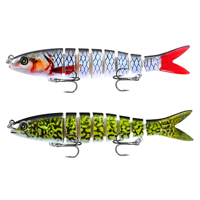 Artificial Bait 2 Pieces Multi Joint Wobbler Pike Swimbait Jerkbait Bass Bait Fishing Tackle for Fishing Predatory Fish with 2 Treble Hooks Rubber FishAttention: each fishing bait is equipped with 2 very sharp hooks, the hooks are very sharp. Please be car