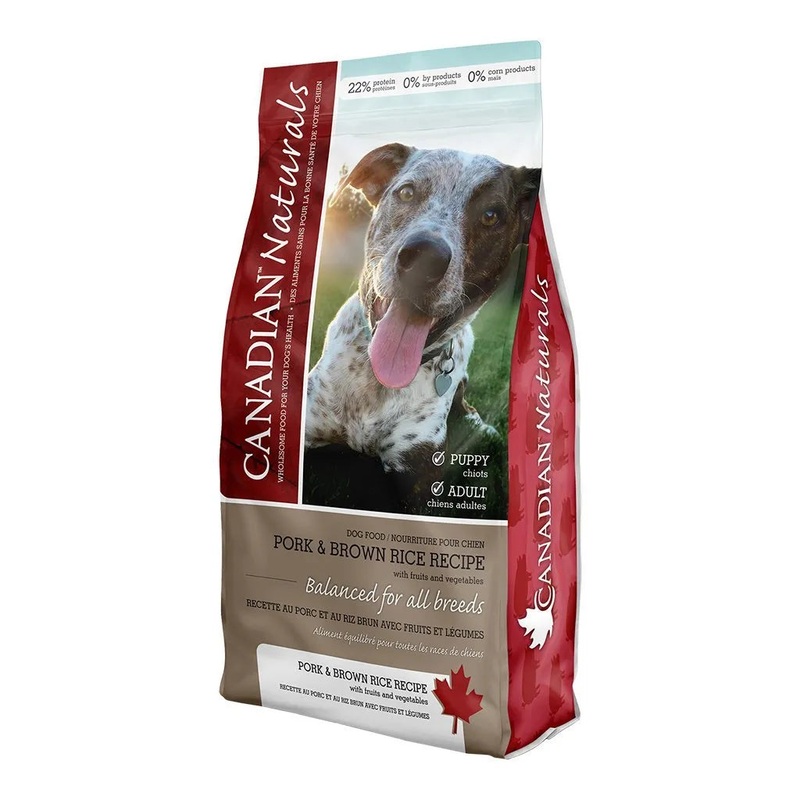 Canadian Naturals Pork and Brown Rice Recipe is a delicious formula that will give your dog a well-rounded diet and ensure hes getting all of the nutrients he needs for optimal health. Only using pork as a single ingredient makes this an excellent formula