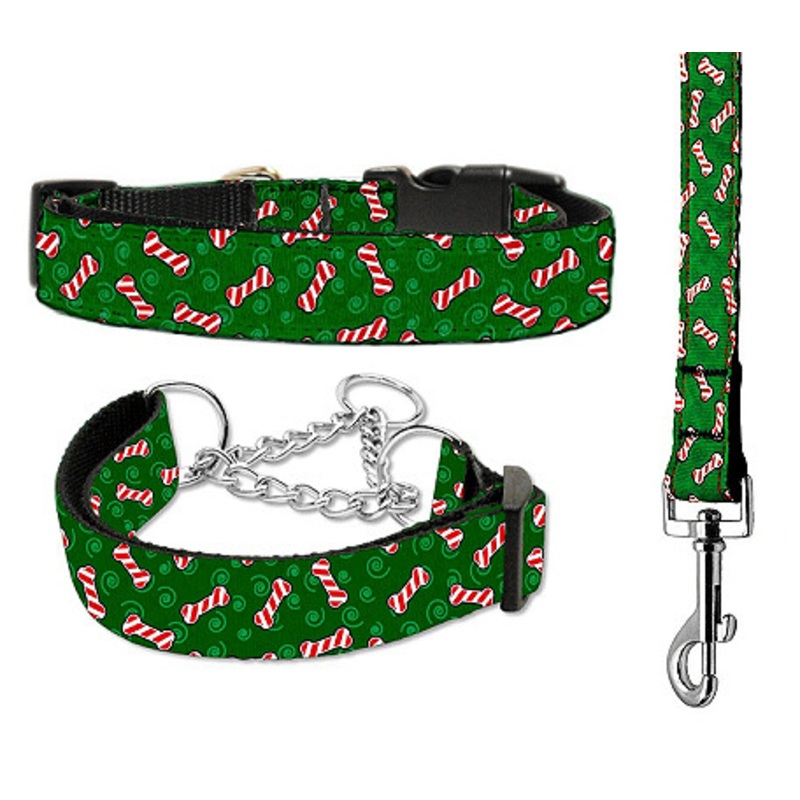 Candy Cane Bones Nylon Ribbon Dog Collar & Matching Leash – Cat & Martingale Cat Collar