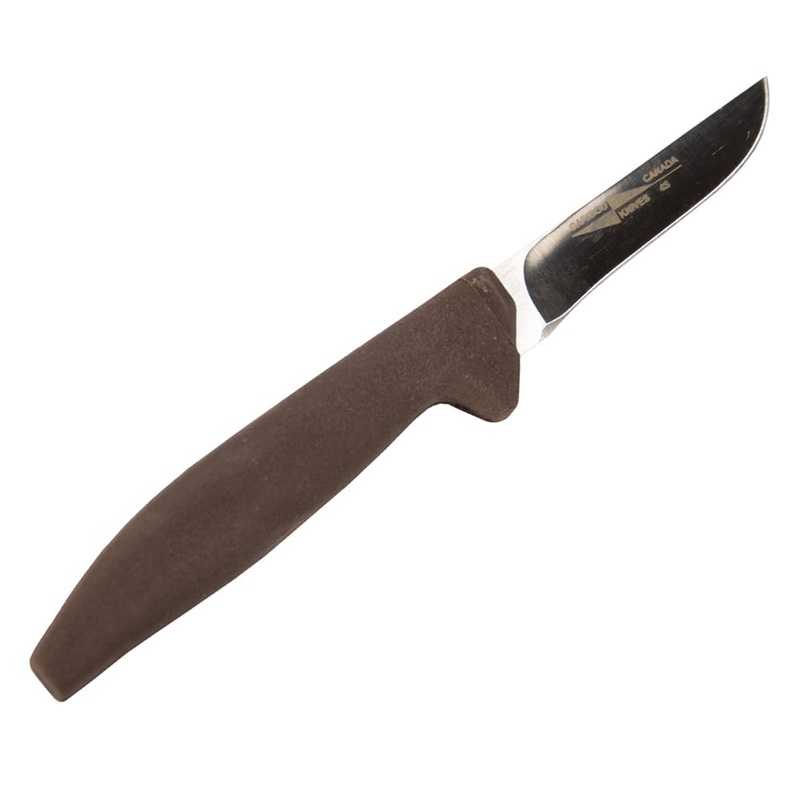 This skinner has a less tapered edge from the 2S, and has a more rounded tip.The blade is 3" in length by 5/8" at it's widest part. Cutting edge is 3" long. "A" HandleBrand:Caribou