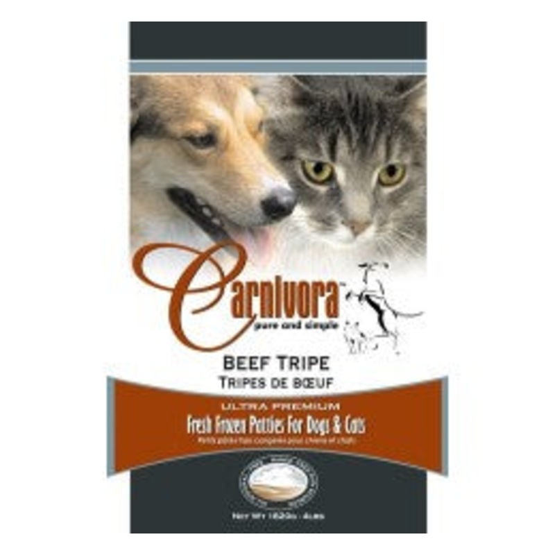 Carnivoras green tripe is amongst the most prized on the market. As expected it is smelly and green and our pets love the stuff even if we cant stand the smell of it! Coming solely from grass fed animals, our green tripe is finely ground beef stomach and green ingesta. These unique stomachs of ruminants have four chambers that systematically break down grasses with a slew of digestive enzymes, gastric juices and amino acids.