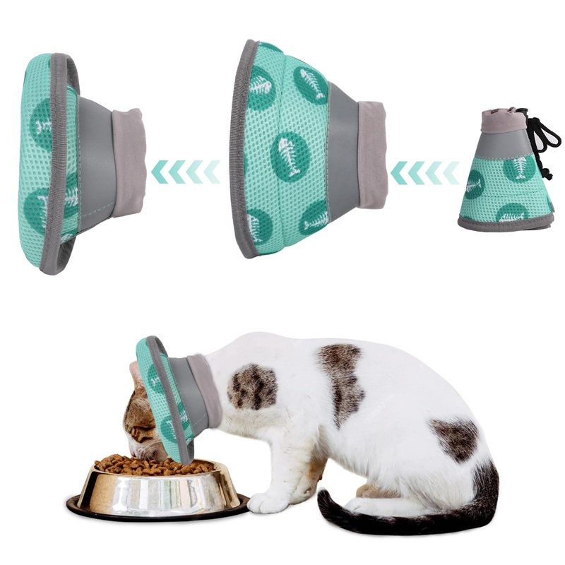 Product Name: Cat Recovery Collar ?Colour: Blue, Pink, Green ?Material: EPE Material, oft and comfortable, lightweight and breathable. ?Size: Small Size Neck Circumference: 5.5 inches-9.5 inches, Medium Size Neck Circumference: 8.5 inches-12 inches ?WARM TIP: Before purchg this cat cone, please measure your kitten’s neck circumference carefully, especially make sure the length of your cat’s head is less than the depth of the cone. Product Usage: 1, The cat cone is like a comfortable barrier around your cat’s neck, which can effectively prevent your pet from biting and licking injured or surgical areas. 2, The cat cone collar is not only a soft collar for short-term use to help retain sutures for post-surgical wound healing, but also for long-term use to prevent anxious biting and licking.Widely Used: Pets often dislike bulky cones, causing cats to trip over them repeatedly. The cat E-collar’s folded-edge design avoids blocking your cat’s view, enabling them to move freely. It is versatile, suitable for bathing, nail trimming, feeding, and other occasions. Soft & Comfortable: Soft cat cone made of polyester mesh material, ensures your pet experiences a soft, light, comfortable, and breathable wear. It won’t impede your pet’s daily movements, allowing them to eat and sleep as usual. Foldable Design: The foldable cone collar for cats has edges that can be folded outward, ensuring a proper fit for your cat’s face. Your cat can eat and sleep without hindrance. The adjustable elastic band allows you to customize the collar’s elasticity according to your pet’s neck size. A helpful tip: remember to tie a knot after making adjustments. Helps Rapid Recovery of Wounds: Elizabethan collar for cats features a protective barrier around the cat’s neck, preventing it from licking wounds during the recovery period and promoting swift healing. It can be used for extended periods to deter anxious biting or licking, safeguarding people from pet bites. Size Choice: NOTE: Cat Recovery Cone Collar is only suitable for kittens, puppies or small to medium sized cats. Not suitable for large cats and dogs. Please accurately measure your cat’s neck circumference and neck to nose distance before purchase. cat recovery cone collar is available in three colors: BluePinkGreen. Small: 5.5-9.5 inches (13-24cm), Medium: 8.5-12 inches (21-30cm).