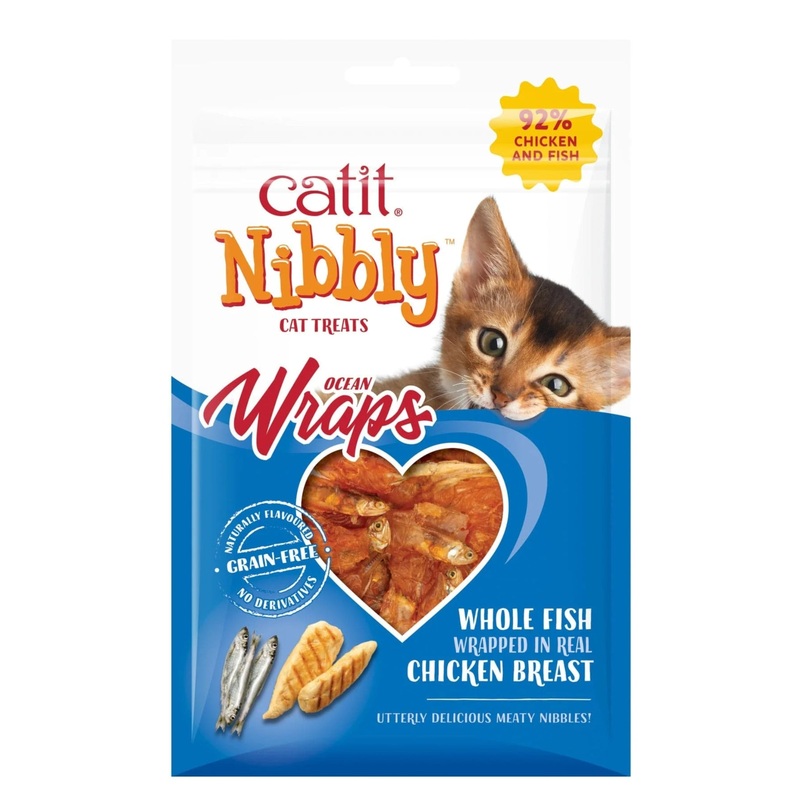 Catit Nibbly Wraps are irresistible, protein-rich cat treats featuring tender chicken fillets wrapped in real fish for a delicious, natural flavour. These soft, chewy treats are ideal for cats of all ages, offering a grain-free recipe with no artificial ad