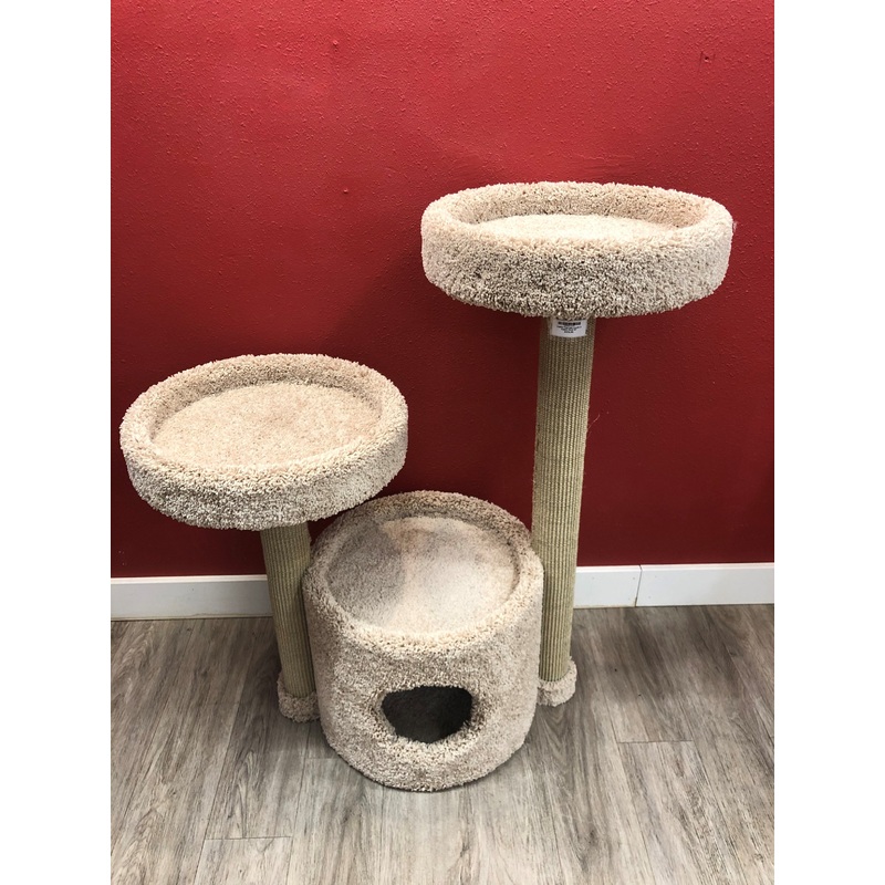 94S16 inch condo with 24 inch and 36 inch sisal posts with 16 inch diameter rounded sleeping perches atop each post. Overall height is 42 inches.