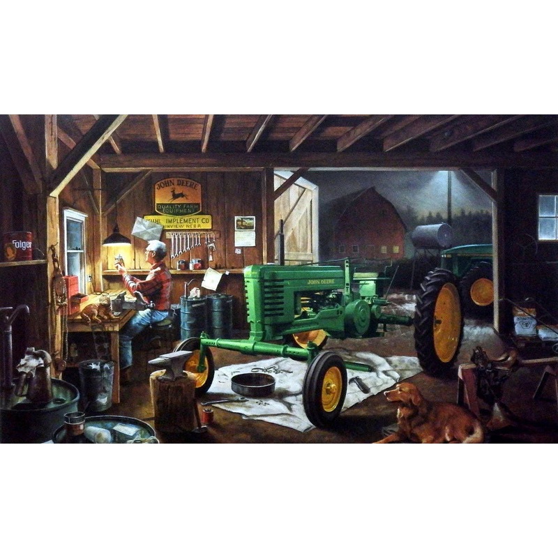 In Charles Freitag's print RESTORATION, looks like Grandpa is changing the oil in the old John Deere Tractor. He is obviously a fan--look at all of the Deere advertising.Image Size 10 x 7 plus small borderPick up is available at Grandpa Earls Country Store