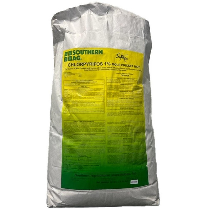 Southern AgChlorpyrifos 1% Mole Cricket Bait 40LB BagPart# 23729This product is used for control of mole crickets and various other listed insects infesting turf on golf courses, sod farms, road medians, and commercial ornamental nurseries.Insects controll