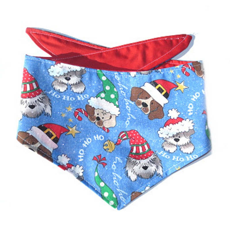 Dog Bandana - Christmas Hat PupsTheChristmas Hat Pups dog bandana, a one-of-a-kind bandana for your favorite 4-legged friend, made exclusively for PupRwear. Cute pups with candy canes, and sporting differnt Christmas hats and fabric has glitter for lots of