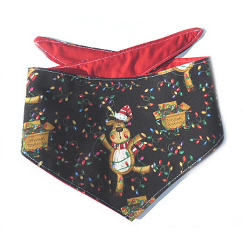 Dog Bandana - Tangled ReindeerTheTangled Reindeer dog bandana, a one-of-a-kind bandana for your favorite 4-legged friend, made exclusively for PupRwear. Cute Reindeer tangled in the Christmas lights. Super Cute! Celebrate the holidays with a bandana for al