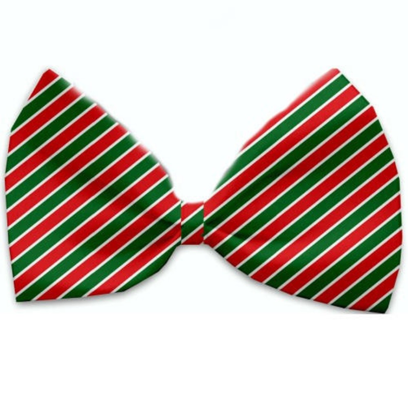 Christmas StripePet Dog Bow TieA bow tie is great way to dress up your pet. This fun dog bowtie is classy and ideal for celebrations. This bow tie for dogs comes with a durable elastic band that will stretch to fit necks from 10" - 19". The bow itself is m