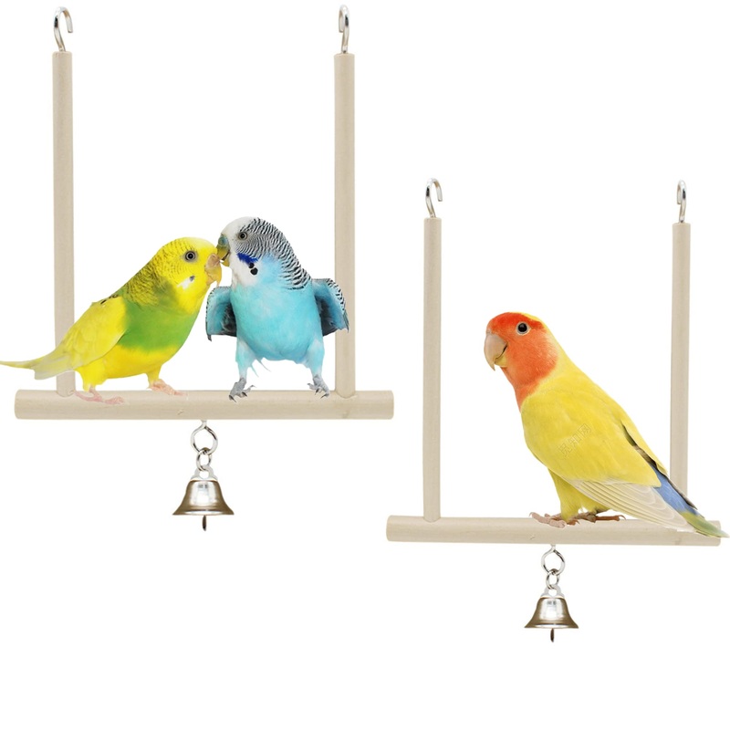 Ciny 2pcs bird toys natural swings made of solid wood stand for bird cages hanging toy pet swing with bell ahms up their natural habitat parrot toys