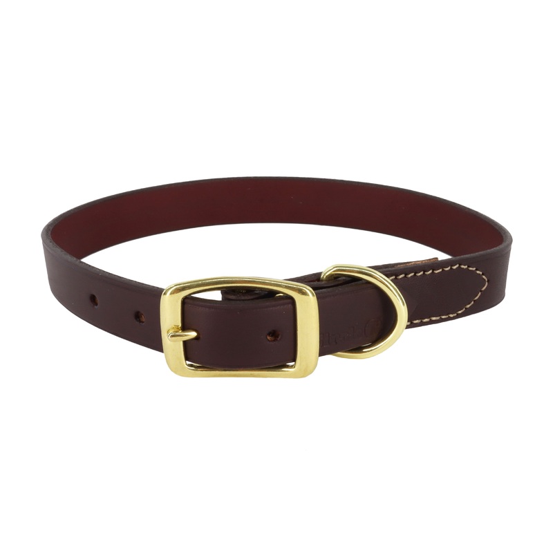 Get classic, natural beauty in your dog’s collar with the Circle T Latigo Leather Town Dog Collar with Solid Brass Hardware! The handcrafted leather provides an extremely strong collar that withstands wear in all outdoor climates. Its durable design maintains the rich natural coloring and beauty even through weathering. The solid brass hardware completes this classic collar with a polished touch. Your dog will love the soft feel of the collar’s quality leather, which prevents rubbing and irritation. Plus, the leather becomes even more supple and comfortable over time. Upgrade your dog’s collar with a timeless, refined look!