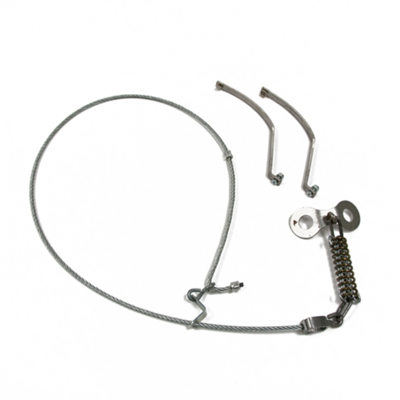 This is a kit to convert a Fox Model Collarum to a device capable of capturing Coyote. The kit includes longer arms which hold the cable loop in place when the Collarum is set and a larger 3/16" cable suitable for handling coyote sized animals.The cable is