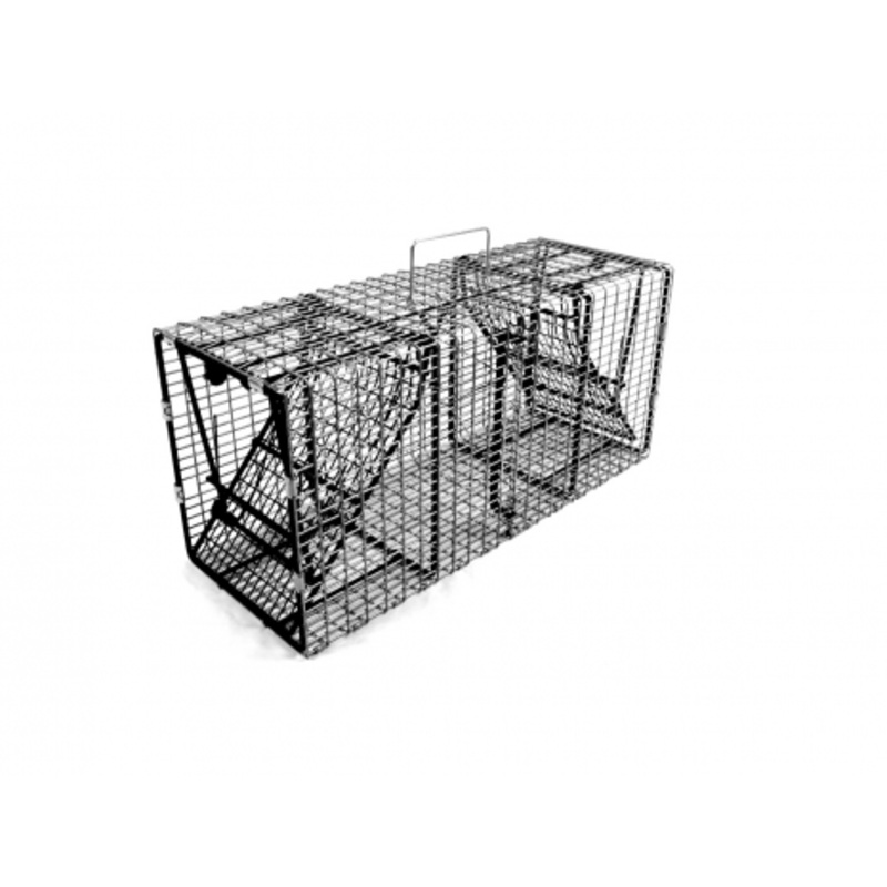 Model C911DD-18 is designed for raccoon, woodchuck, opossum, rabbits and similar size animals.It weighs 11 lbs, is constructed of 1/2" x 1" wire mesh throughout the trap and measures 18L x 9W x 11H. This trap has two trap doors and is strong, reliable, dur